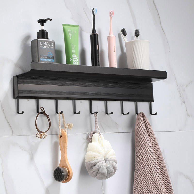 The Modern Black Wall Mounted Kitchen Organizer Rack is a space-saving hanging storage solution with built-in hooks for utensils and a shelf for spice storage. Designed with a sleek black finish, it offers durable construction and easy wall mounting, making it ideal for organized and modern kitchens.